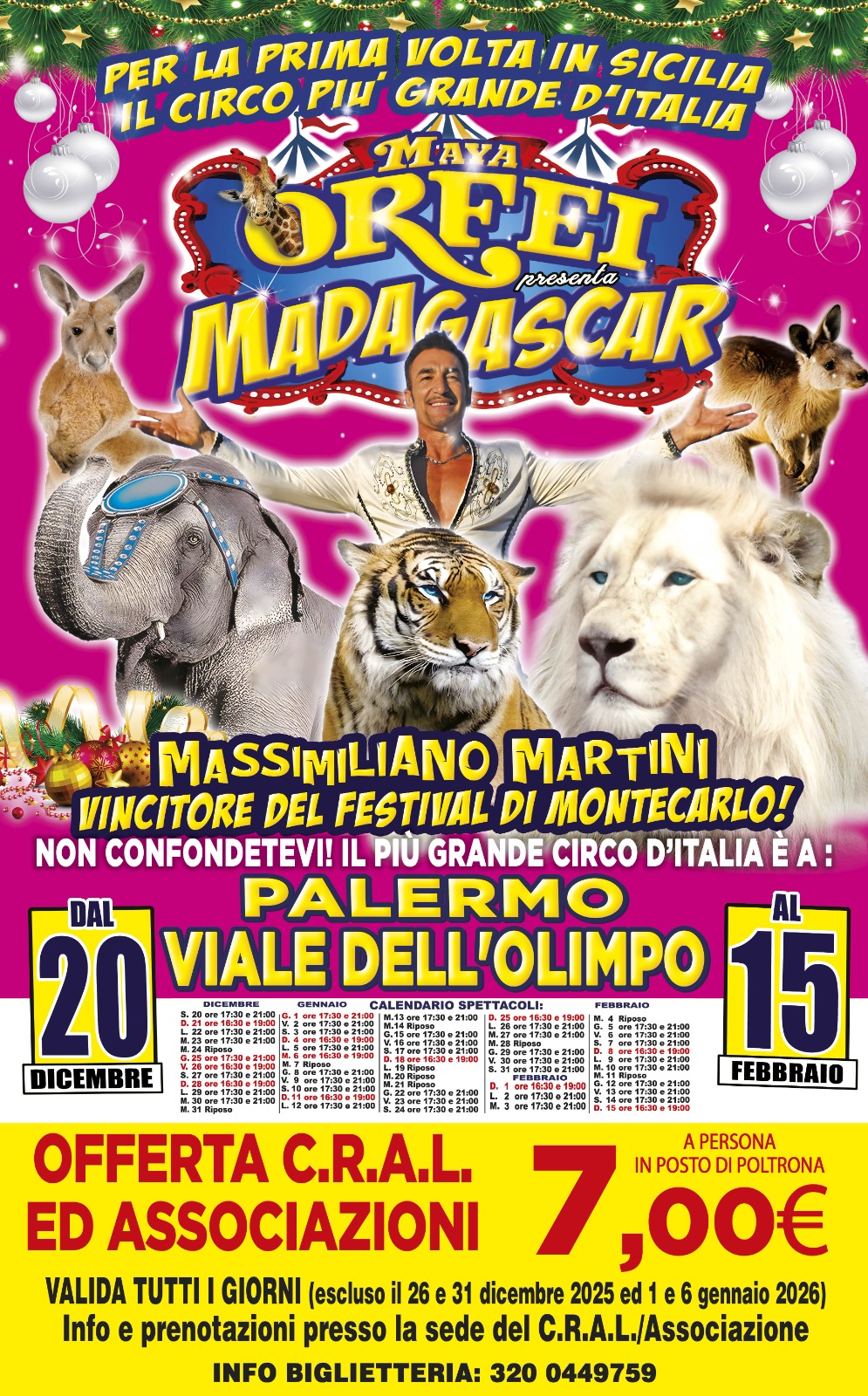 Circo Maya Orfei Madagascar a Palermo dal 20 Dicembre 2025 al 15 Febbraio 2026.